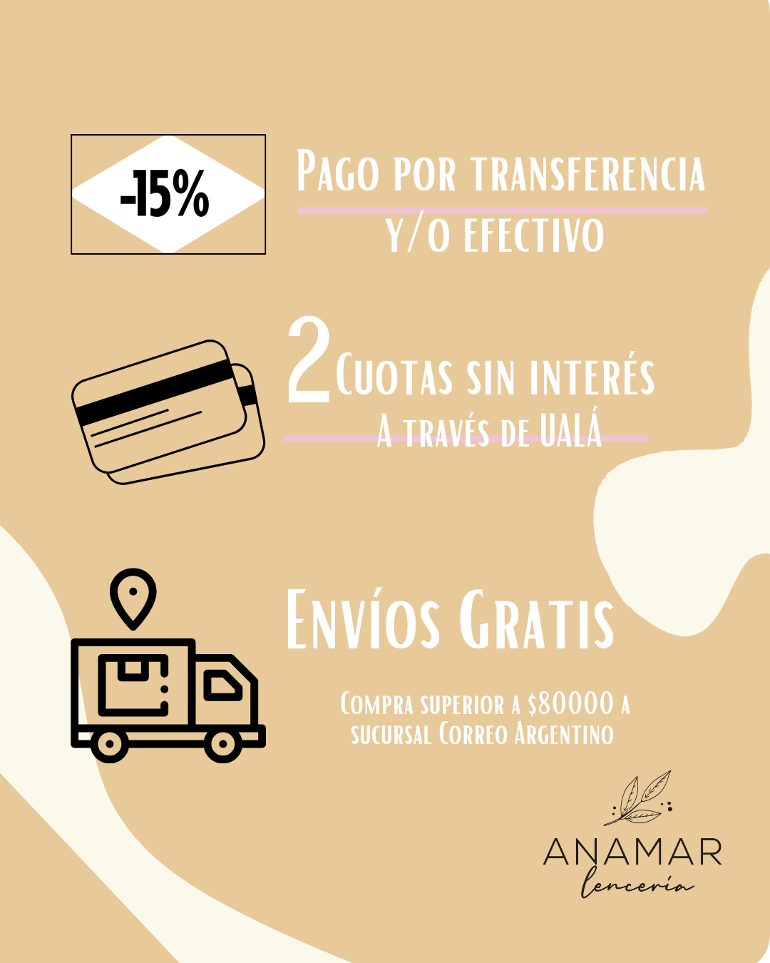 15% pago por transferencia usando el cupón DESCUENTO. 2 cuotas sin interés a través de Ualabis, tarjetas de crédito con Mercado Pago. Envío GRATIS a partir de $80000 a sucursal de Correo Argentino.