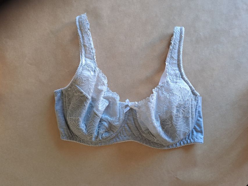 Corpiño con arco entero, combinado con puntilla en copas y cintura de algodón.