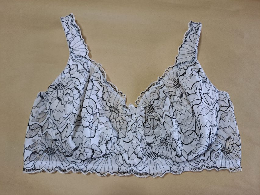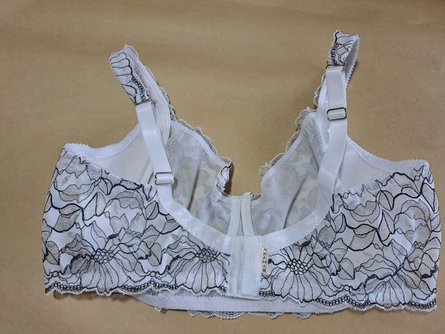 Corpiño con arco entero, de puntilla, con copa forrada en microtul (opcional algodón). Cuenta con una pieza interna en la copa en su lateral que contiene más la mama para que no se desplace hacia los costados, y esta misma pieza continúa hasta el hombro, haciendolo más confortable por ser acolchonado.