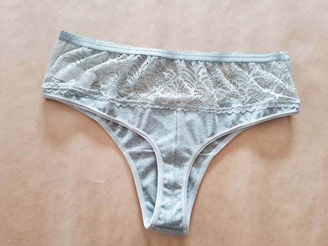 Bombacha culotte less tiro medio de algodón y puntilla, es de pierna baja, con costados anchos.